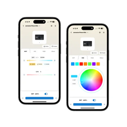 Control your lights wirelessly with the amaran app – perfect for quick adjustments during shoots or managing multi-light setups for live events. Whether your amaran Pano 60c is mounted out of reach or you’re working with a full studio setup, the amaran app lets you fine-tune settings with a single click –  all from your phone or desktop.