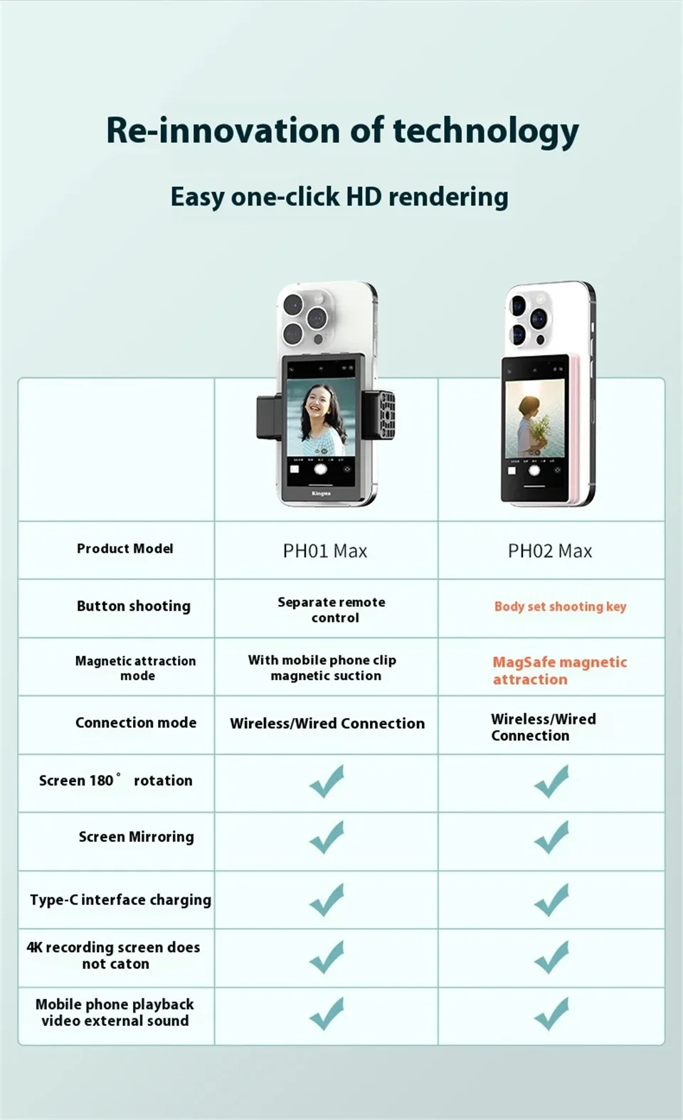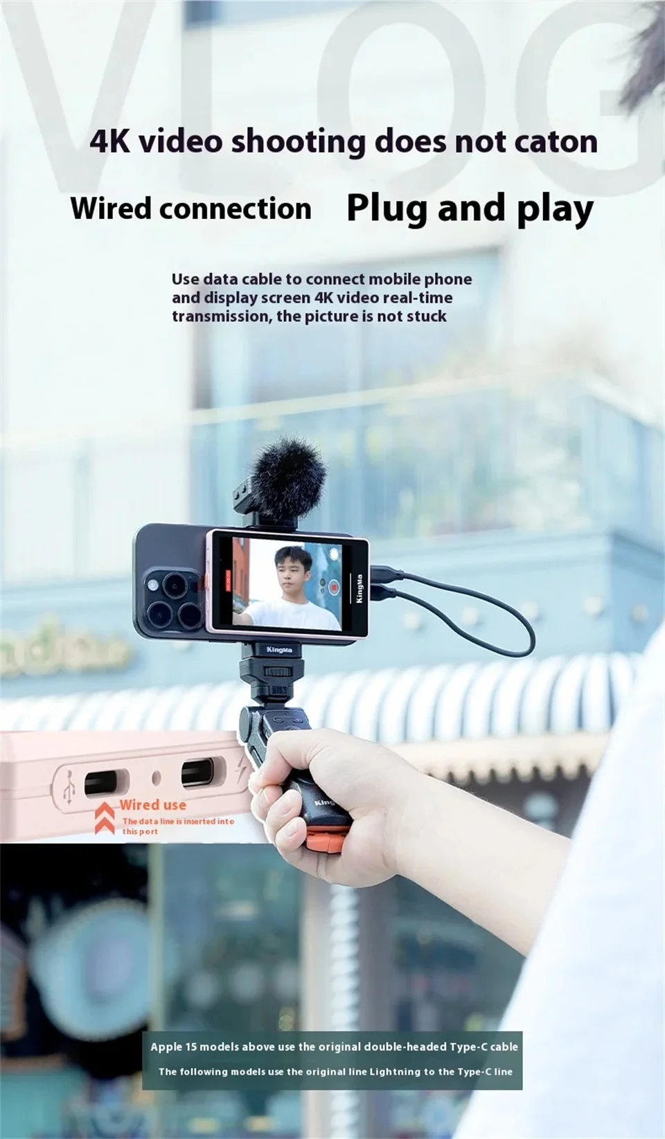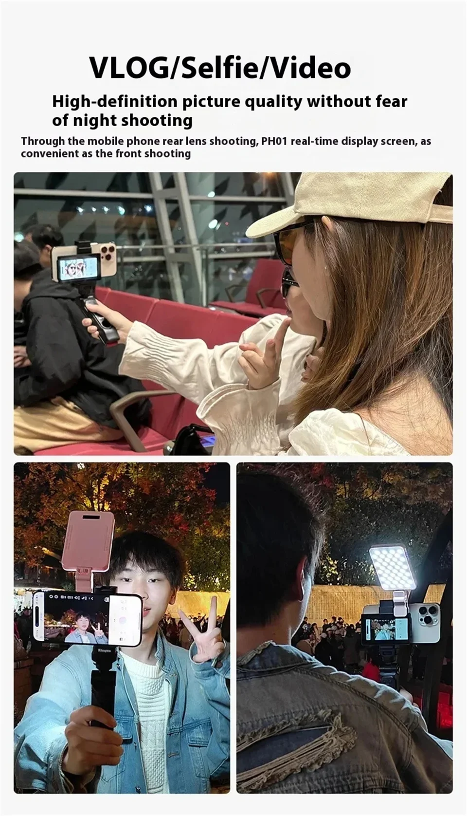 FANGTUOSI Custom Smartphone Vlog Selfie Monitor Screen Magnetic Phone Rear Camera For Selfie Vlog Live Stream For Android Iphone