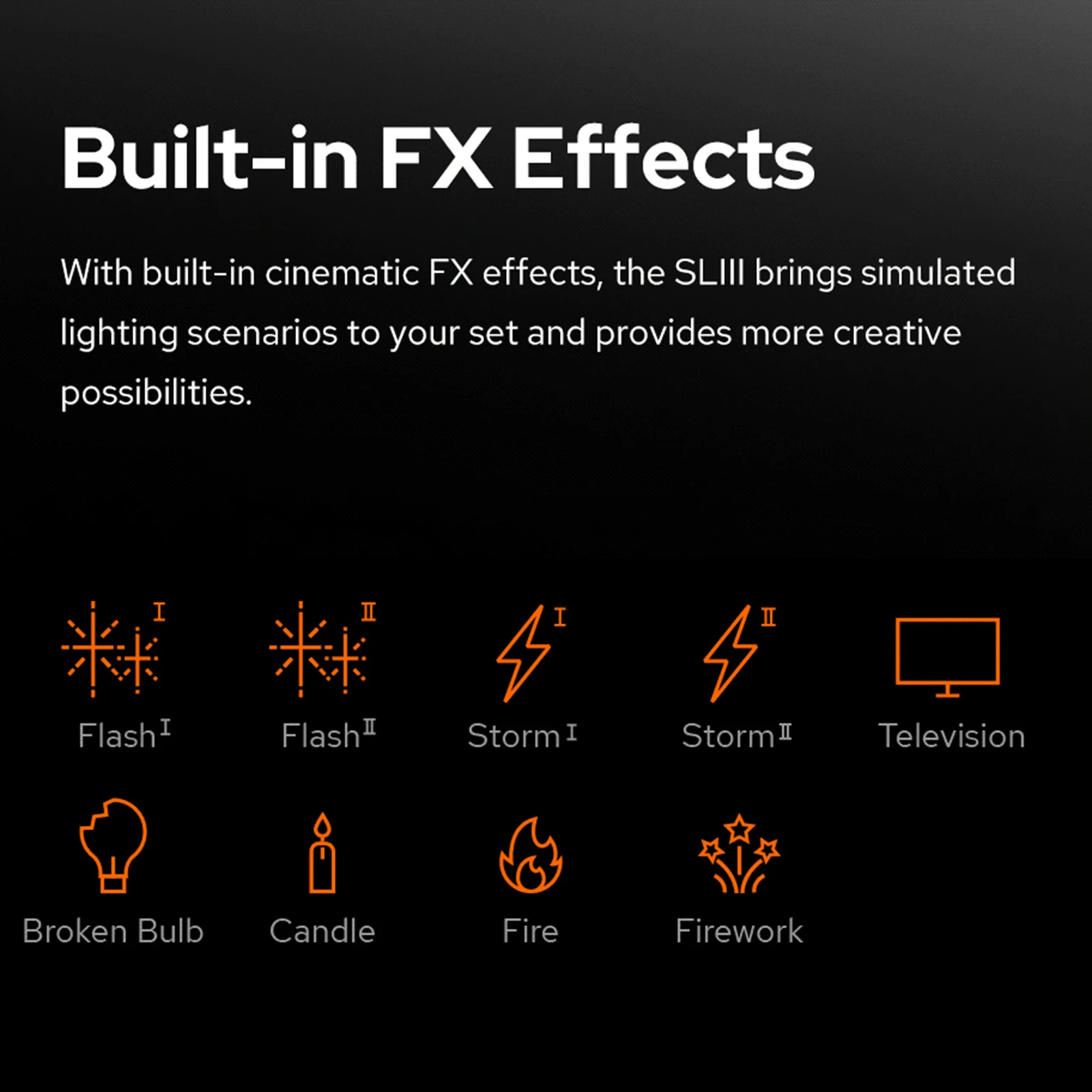 【Bi-Color Temperature & 9 Lighting Effects】2800K-6500K bi-color temperature design, more convenient to get cold or warm light to match the ambience and create mood; 9 built-in lighting effects for you to easily emulate certain scenes of life, which can meet your needs for either personal content creating or commercial production.