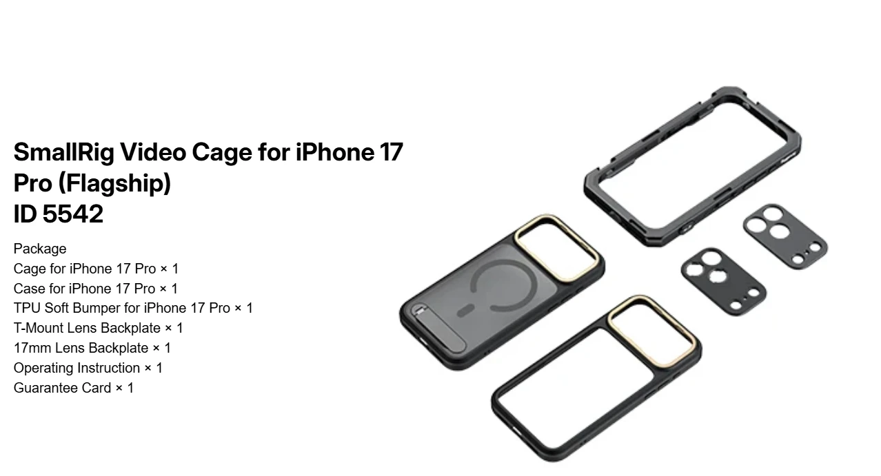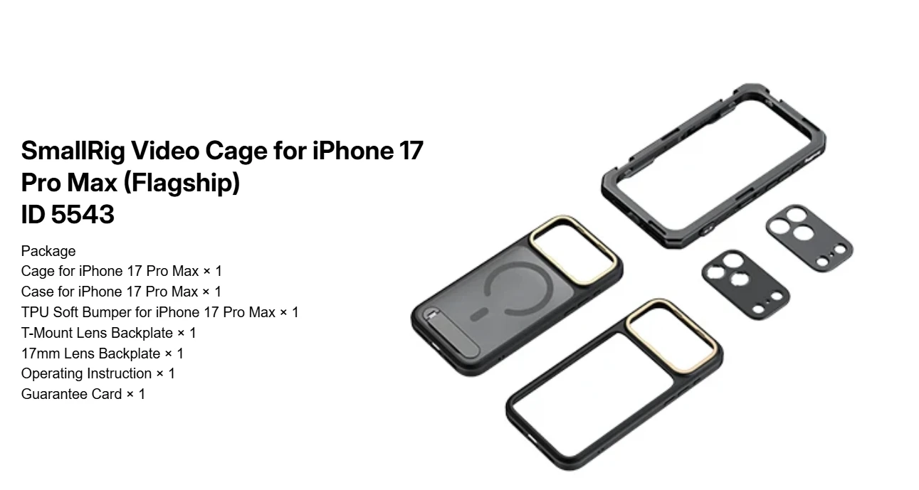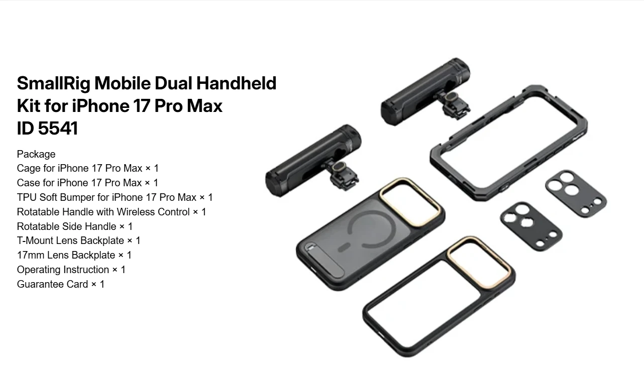 SmallRig for iPhone 17 Pro/iPhone 17 Pro Max Basic Cage,Flagship Cage, Mobile Dual Handheld Phone Cage Kit, 5540/5541/5542/5543