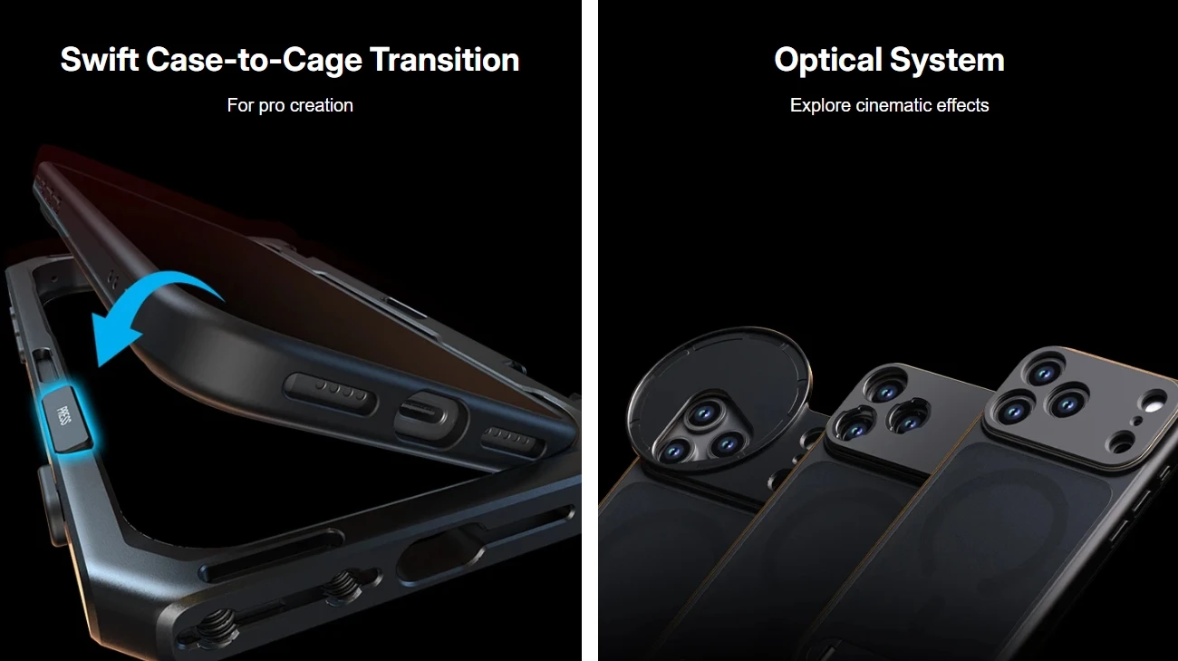 · Full Ecosystem Expansion: Easily integrate audio, lighting, and accessories while switching between case and cage setups.