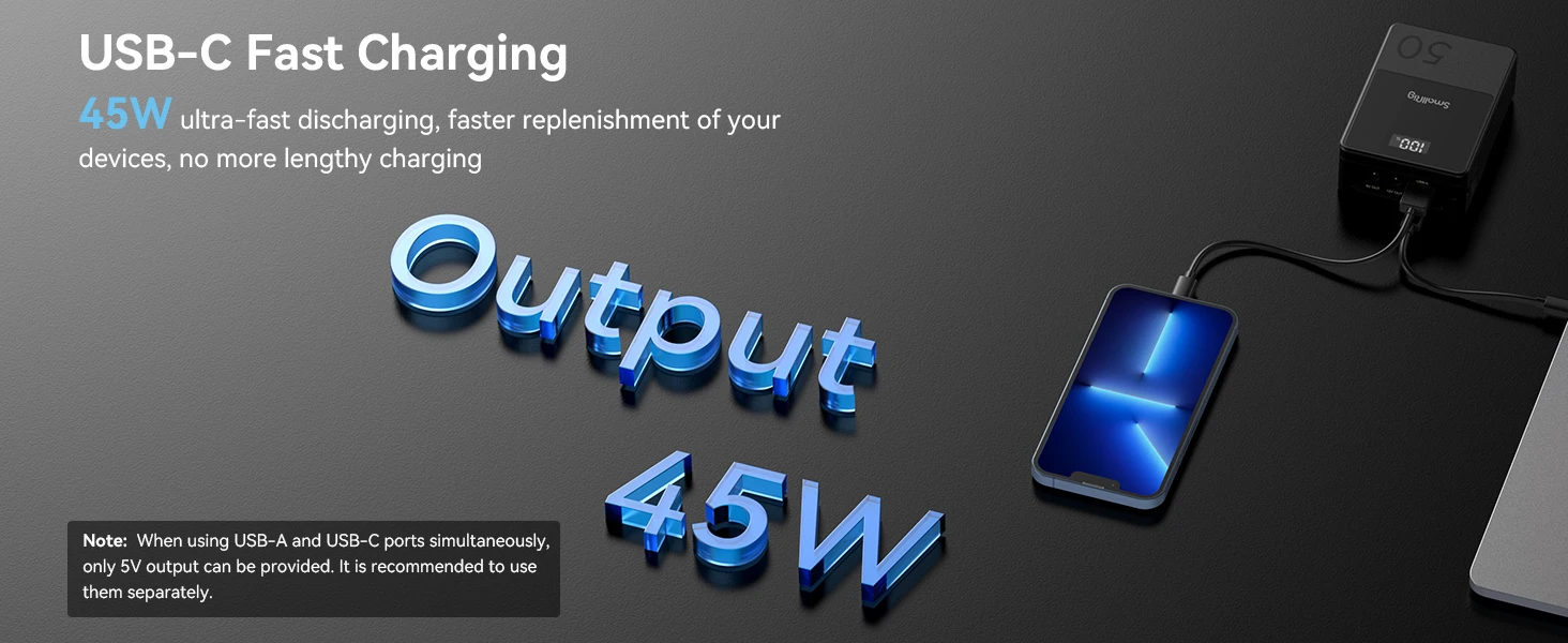45W ultra-fast discharging, faster replenishment of your devices, no more lengthy charging