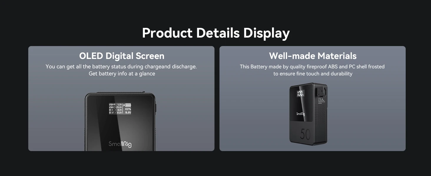 PowerADC is SmallRig's exclusive intelligent charging technology, encompassing chip software, hardware circuits, compact structural design, and heat dissipation solutions. Through the enhancement and integration of these components, we achieve safe and stable fast charging while keeping the products compact