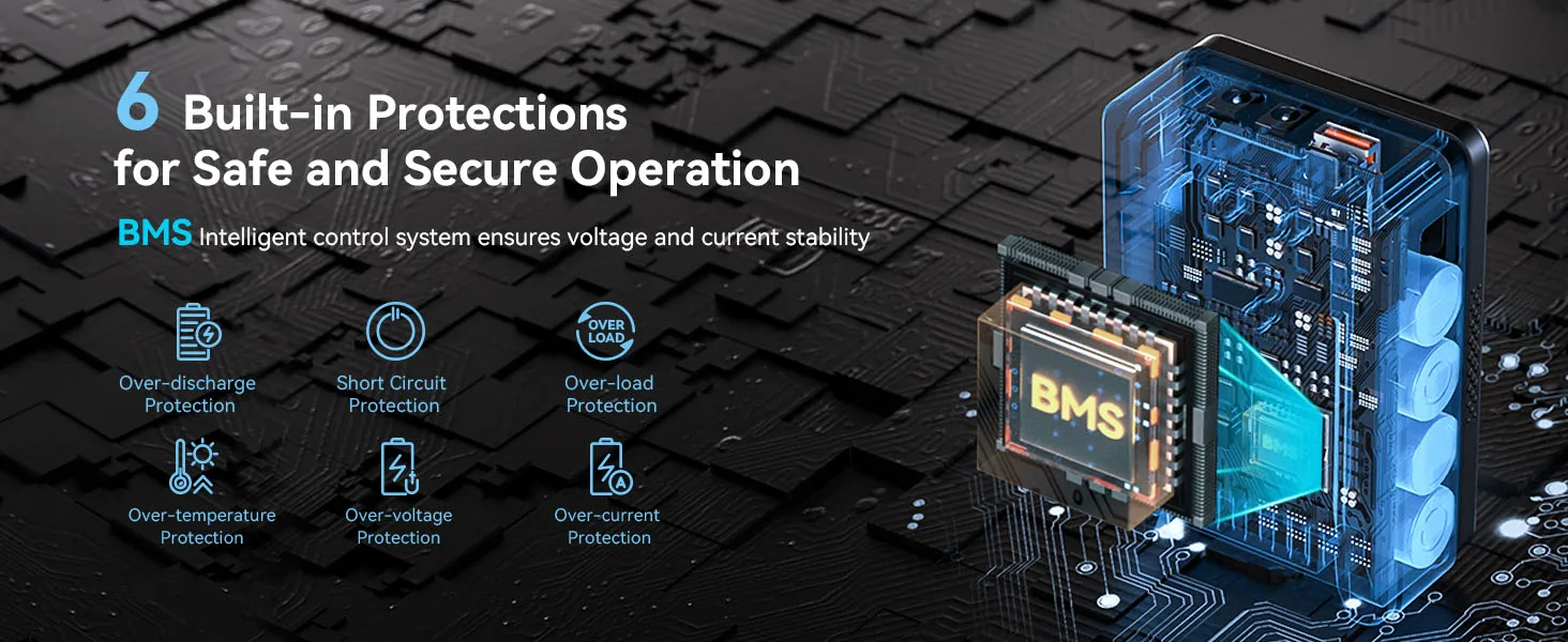 4 built-in LG power batteries with 3400mAh per density cell provide safe high-rate stable charging and discharging cycles