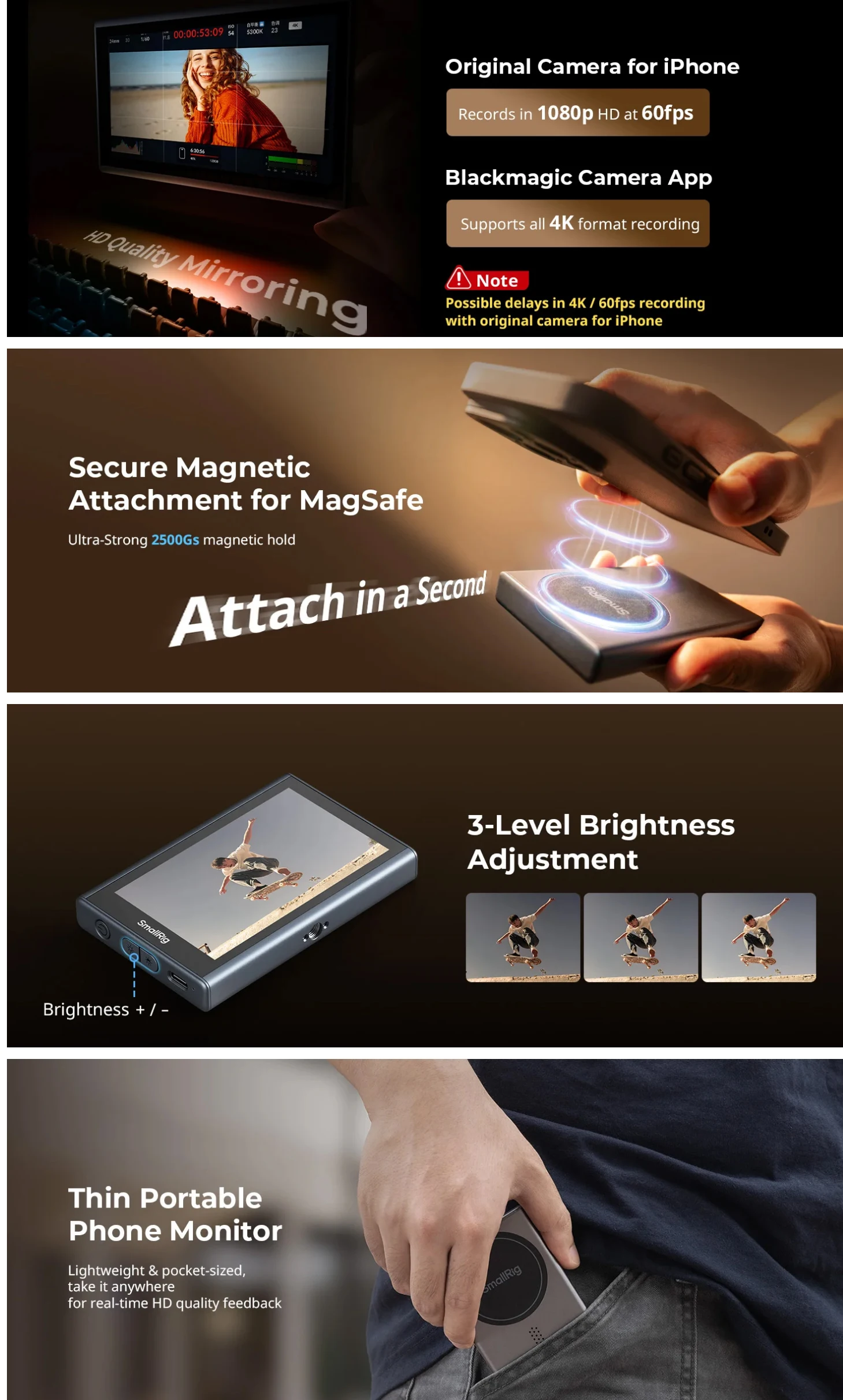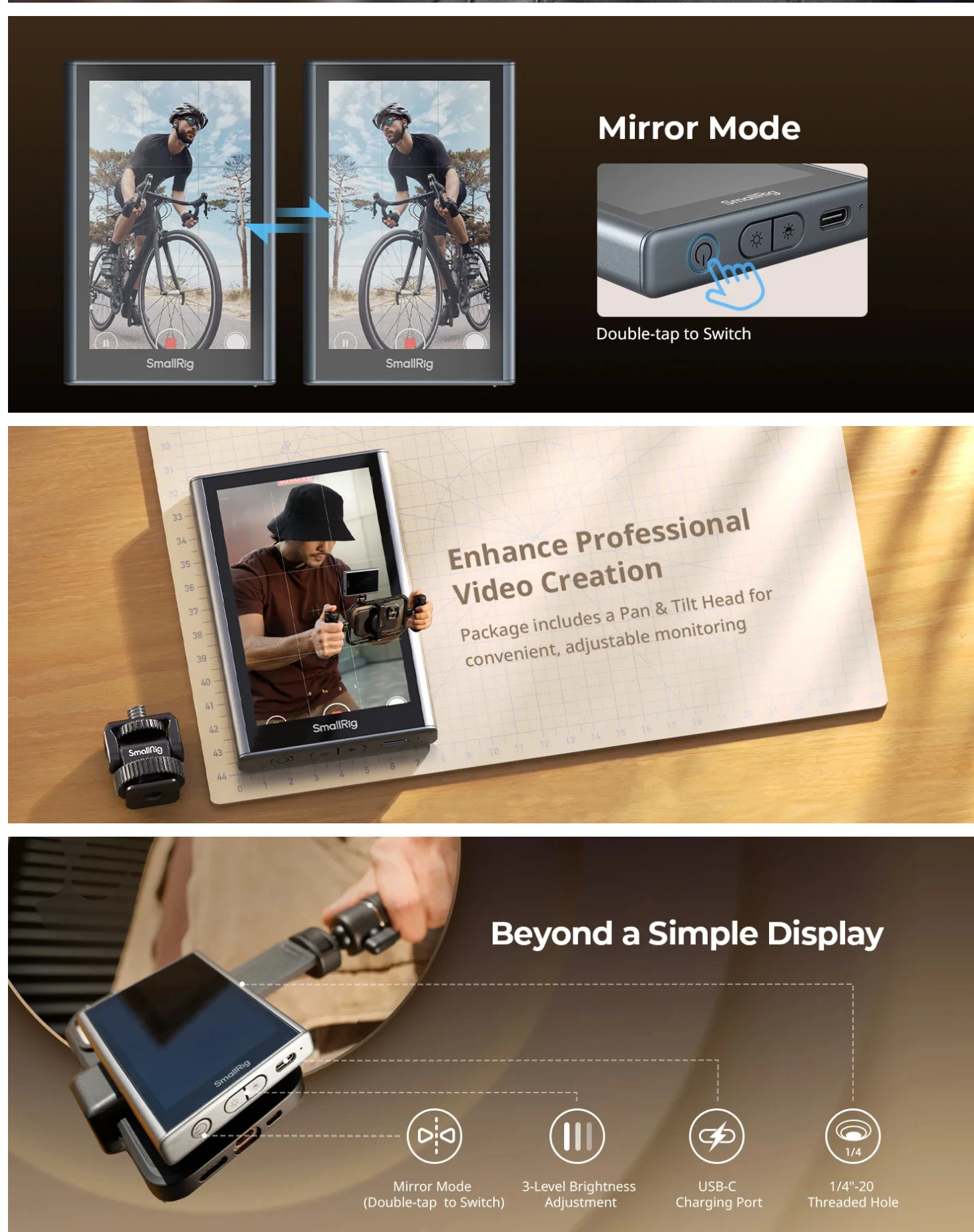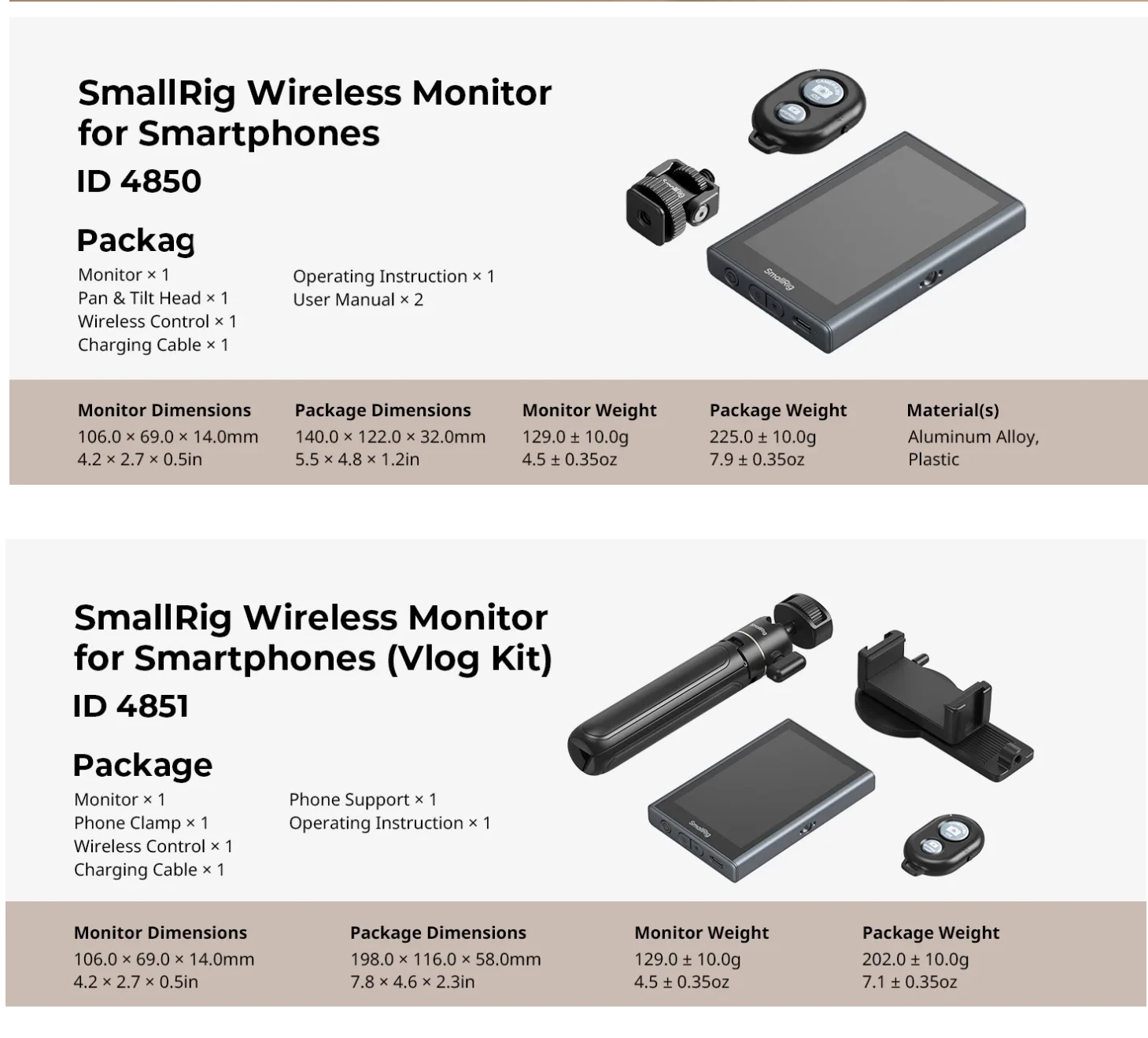 SmallRig Wireless Video Monitor Rear Camera 1080P 4K Wireless Screen Mirroring for Android IOS Phones Cameras 4851/4850