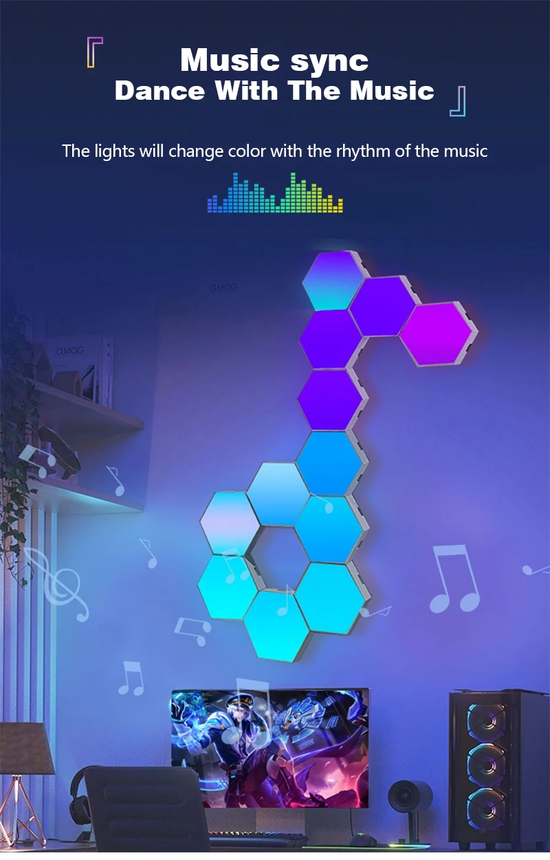 Tuya Smart RGB Quantum Light DIY Decor LED Wall Lamp APP Sound Pickup Game Room Music Rhythm Festival Atmosphere Esports Light