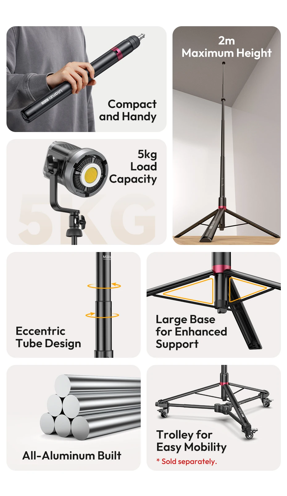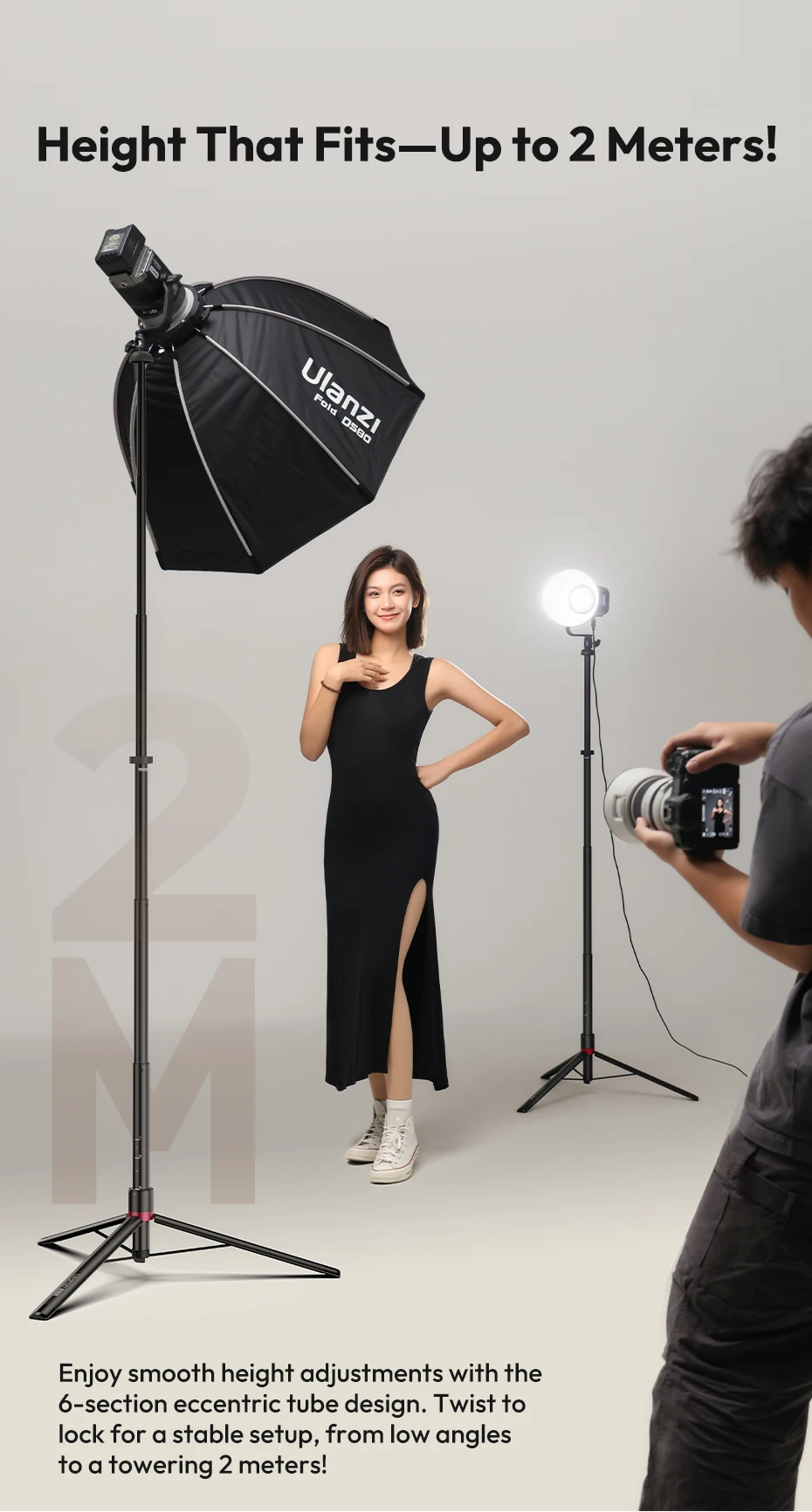 Ulanzi AT-05 2M Heavy Duty Foldable Tripod Light Stand for DSLR Camera Video Light Photography Studio Livestreaming Max Load 5KG