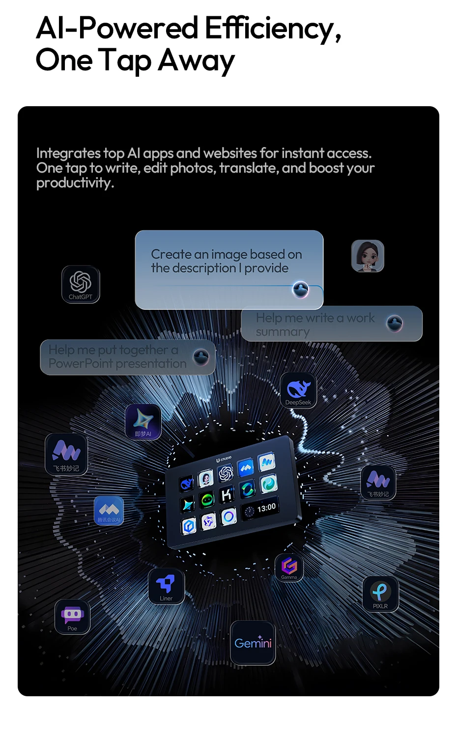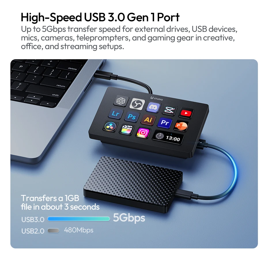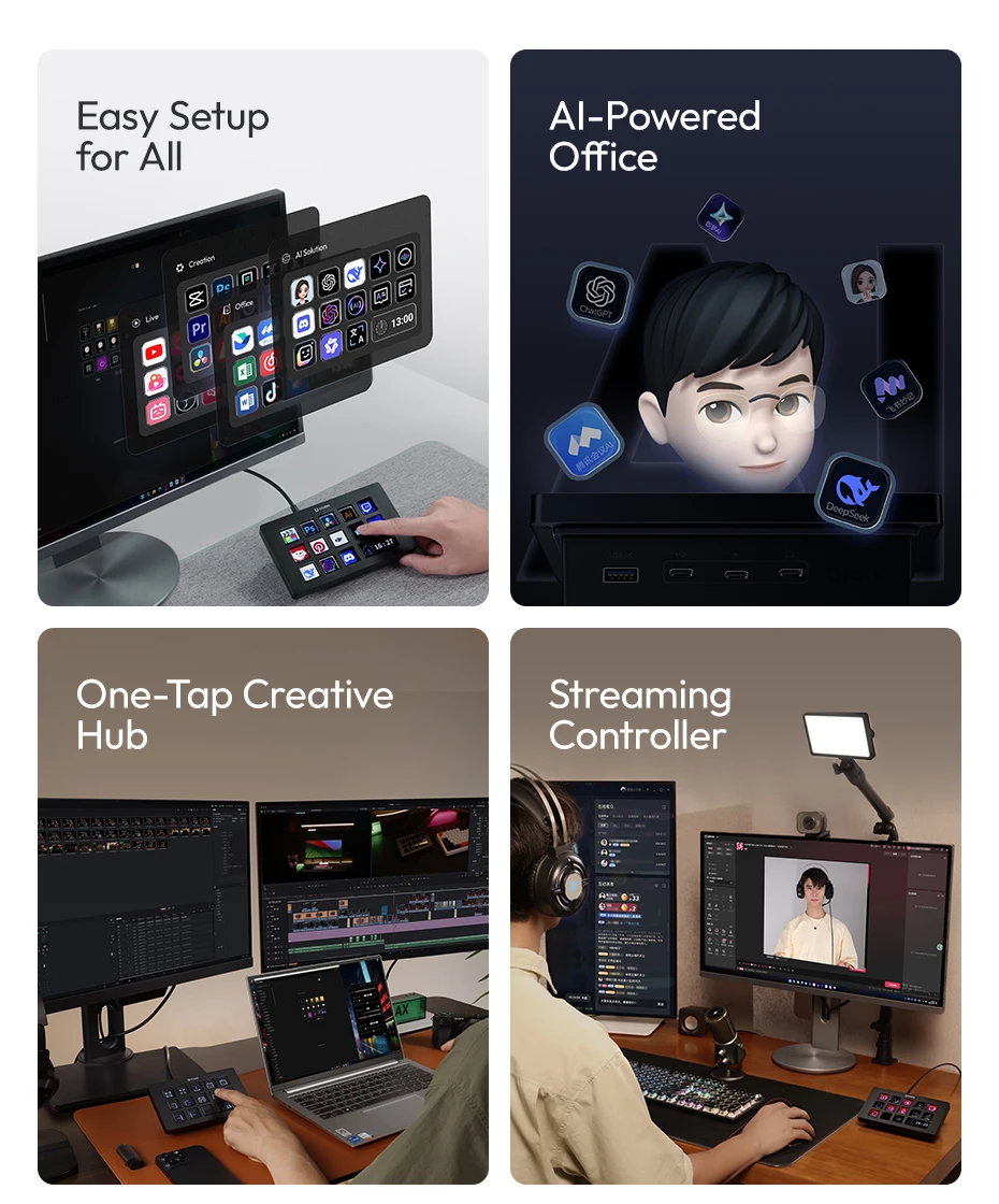 Ulanzi D200H Deck Dock Streaming Controller for Photography Desk Intelligent Lighting Control Office Assistant Streaming Control