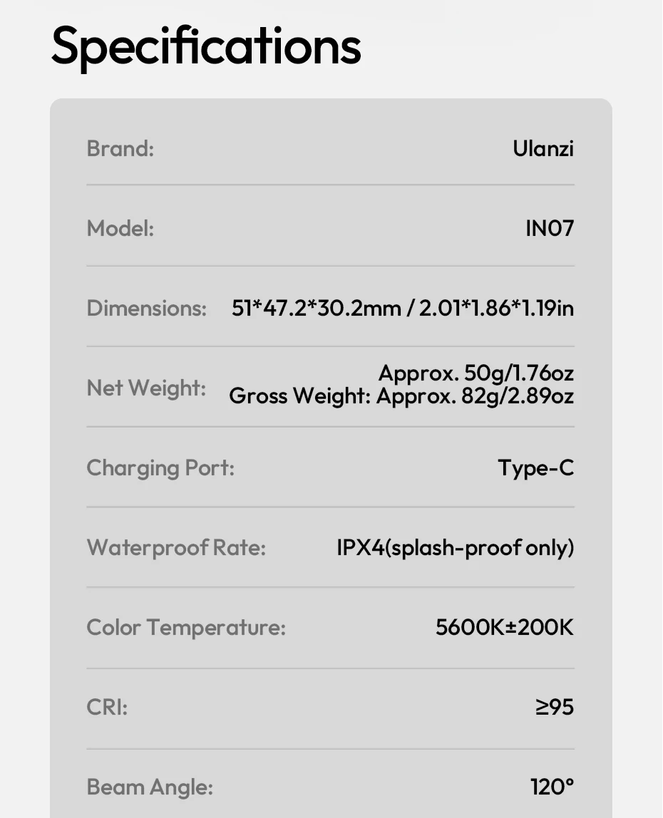 Ulanzi IN07 Mini Magnetic Fill Light for Insta360 Go Ultra Compatible with Go Ultra magnetic base for Vlog Street Photography