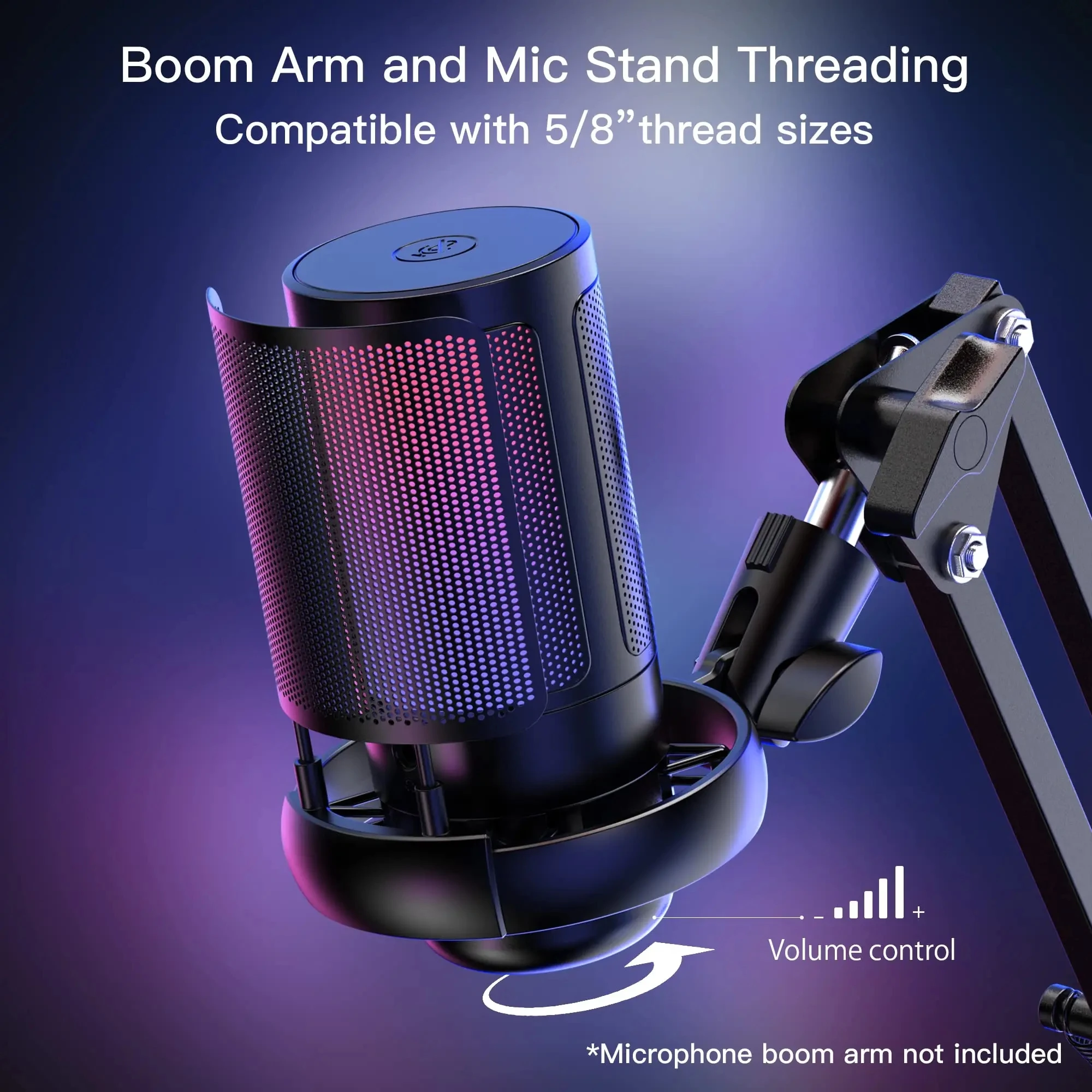 USB Condenser Microphone RGB Esports Game Call Recording Condenser Mic with Metal Boom Stand Desktop Mic for Studio Recording