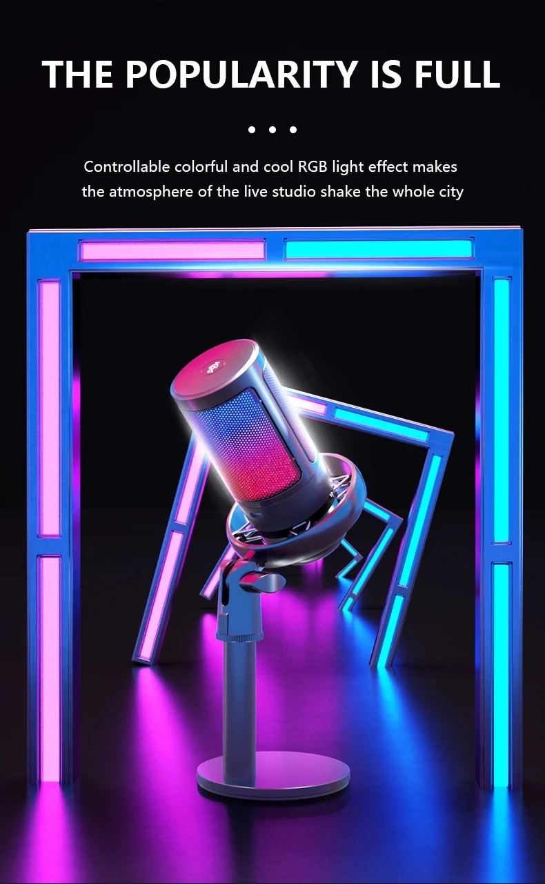 Function: USB Mic, With RGB lighting, PORTABLE, Noise Cancelling,LED, with stand